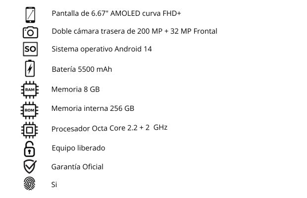 ¿Por qué elegir este smartphone y no otro? Porque combina alto rendimiento con diseño premium: procesador MediaTek Helio G100-Ultra, 8GB de RAM, 256GB de almacenamiento, batería de 5500mAh con carga turbo de 45W, y pantalla protegida con Gorilla Glass Victus® 2 para más resistencia en el día a día.